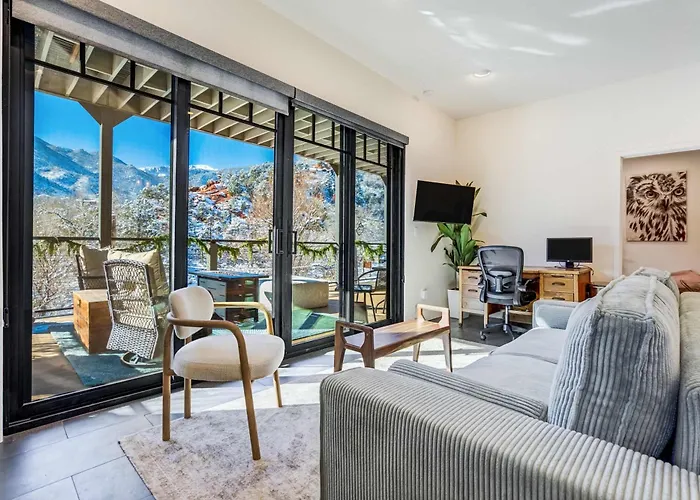 Situado a 5 minutos a pie del Parque Memorial, el Apartamento Redstone Terrace Scenic Mountain View Retreat Manitou Springs tiene vistas a las montañas. Entre las atracciones de la zona encontrarás el Sitio Histórico del Rancho Rock Ledge, a 3 km, y el Jardín de Esculturas de los Vientos se encuentra a 3,1 km del apartamento.